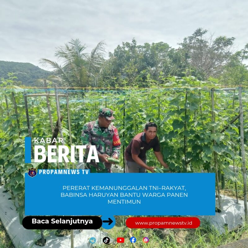 BARABAI, // PropamNewstv.id – Wujud kepedulian TNI terhadap masyarakat terus ditunjukkan oleh Babinsa Koramil 1002-03/Haruyan. Sertu Sutoyo turun langsung membantu panen mentimun milik Bapak Ahmadi di Desa Hapulang, Kecamatan Haruyan, Kabupaten Hulu Sungai Tengah, Rabu (14/01/2026).