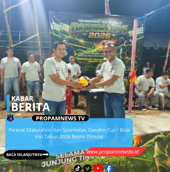 HULU SUNGAI TENGAH, // PropamNewstv.id – Mewakili Dandim 1002/Hulu Sungai Tengah Letkol Inf Ardiansyah Okta Putra Siregar, Danramil 1002-02/Batang Alai Utara Kapten Czi Obet Subagiyo didampingi Camat Batang Alai Utara dan Kapolsek Batang Alai Utara secara resmi membuka Turnamen Bola Voli Dandim Cup I Tahun 2026 dalam rangka menyambut Bulan Suci Ramadhan 1447 Hijriah.