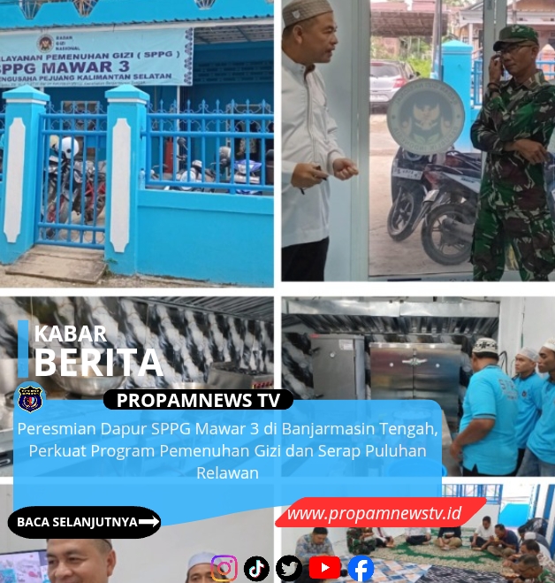 Banjarmasin, // PropamNewstv – 17 Februari 2026 — Peresmian dapur Satuan Pelayanan Pemenuhan Gizi (SPPG) Mawar 3 resmi dilaksanakan di Jalan Cempaka XIII No. 6D RT 07 RW 04, Kelurahan Mawar, Kecamatan Banjarmasin Tengah.