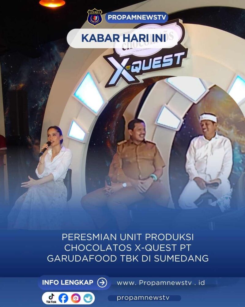 SUMEDANG // propamnewstv.id – PT Garudafood Tbk secara resmi meresmikan unit produksi terbaru untuk produk Chocolatos X-Quest di Sumedang. Acara peresmian ini dihadiri langsung oleh Gubernur Jawa Barat, Kang Dedi Mulyadi, didampingi oleh Bupati Sumedang, Kang Dony Ahmad Munir, serta Direktur Utama PT Garudafood Tbk.