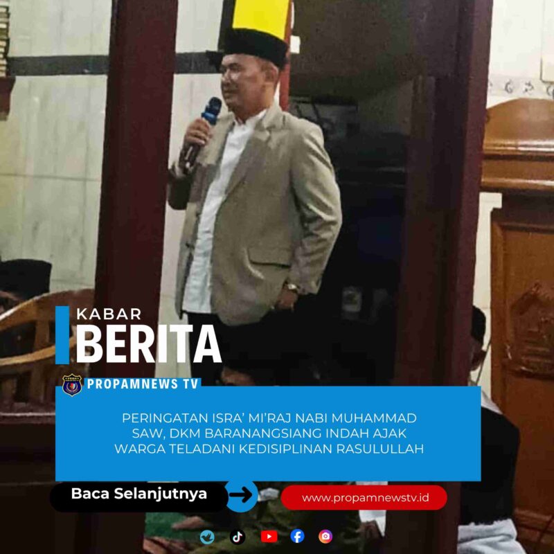 Bandung, // PropamNewstv.id — Peringatan Isra’ Mi’raj Nabi Muhammad SAW berlangsung khidmat di Komplek Baranangsiang Indah, RW 11, Desa Gunung Leutik, Kecamatan Ciparay, Kabupaten Bandung, Minggu (18/1/2026). Kegiatan ini menjadi momentum refleksi spiritual bagi masyarakat untuk merenungi perjalanan mulia Rasulullah SAW sekaligus meneladani kedisiplinan beliau dalam shalat dan kehidupan sehari-hari.