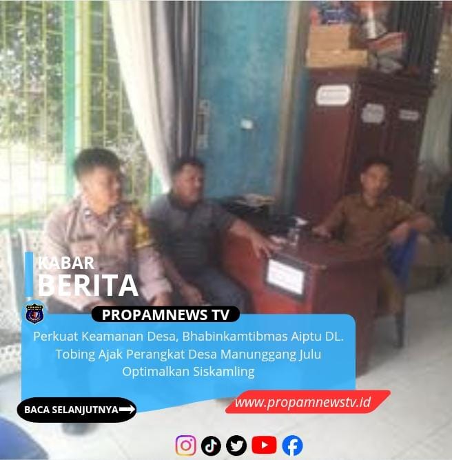 PADANGSIDIMPUAN, // PropamNewstv.id – Dalam upaya menjaga stabilitas keamanan dan ketertiban di tingkat desa, Bhabinkamtibmas Polsek Batunadua Polres Padangsidimpuan, Aiptu DL. Tobing, melaksanakan koordinasi dan silaturahmi ke Kantor Desa Manunggang Julu, Kecamatan Padangsidimpuan Tenggara, Rabu (11/02/2026).