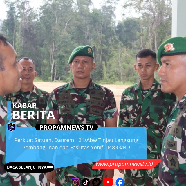 Sanggau, // PropamNewstv.id – Komandan Korem (Danrem) 121/Abw, Brigjen TNI Purnomosidi, S.I.P., M.I.P., M.Han., sambangi Markas Yonif TP 833/Bumi Daranante, Kecamatan Kapuas, Kabupaten Sanggau,