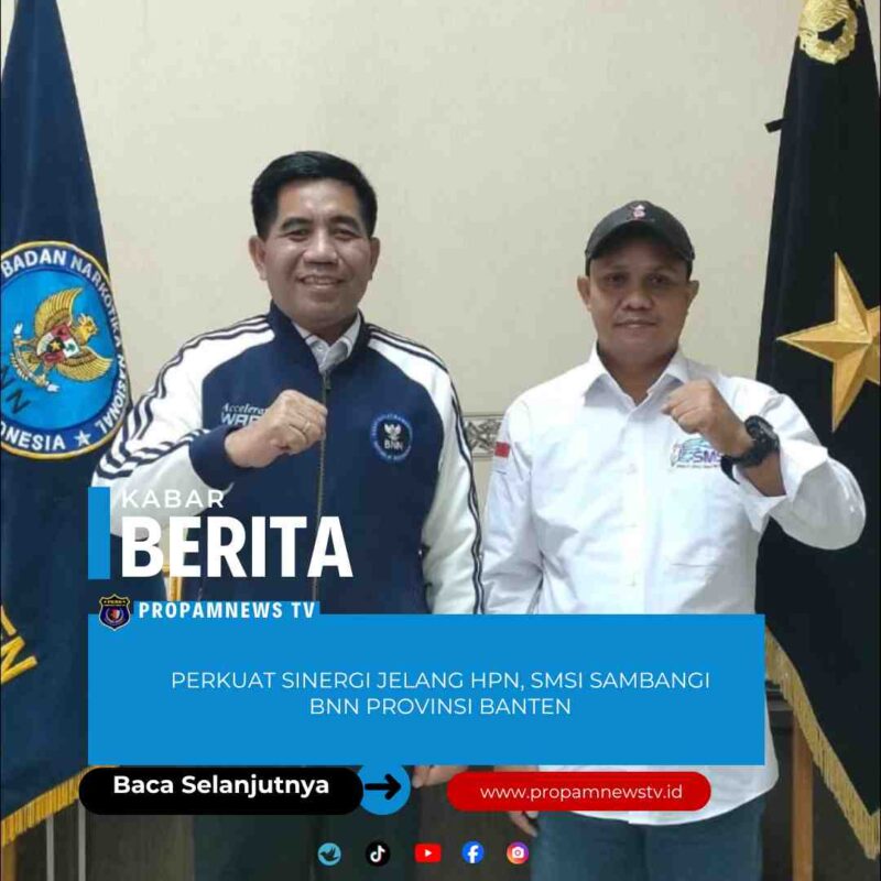 Serang //propamnewstv.id – Dalam rangka memantapkan pelaksanaan Hari Pers Nasional (HPN) Tahun 2026, Serikat Media Siber Indonesia (SMSI) Provinsi Banten terus memperkuat sinergi dan jejaring antar-lembaga. Salah satu langkah konkret dilakukan melalui kunjungan strategis ke Kantor Badan Narkotika Nasional (BNN) Provinsi Banten.