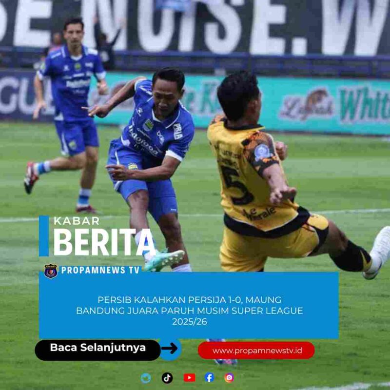 Bandung, // PropamNewstv.id – PERSIB Bandung memastikan diri sebagai juara paruh musim Super League 2025/26 setelah menaklukkan Persija Jakarta dengan skor 1-0 pada laga pekan ke-17 di Stadion Gelora Bandung Lautan Api (GBLA), Minggu, 11 Januari 2026.