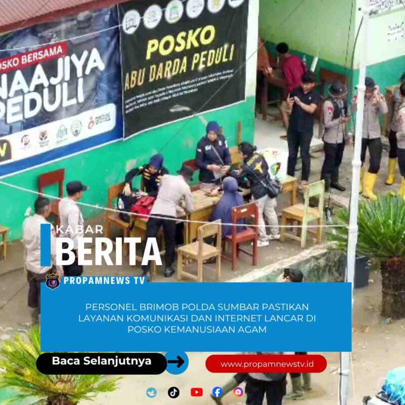 Sumatera Barat //propamnewstv.id — Dalam rangka mendukung kelancaran operasional dan komunikasi pada pelaksanaan tugas kemanusiaan, personel TIK Brimob Polda Sumatera Barat melaksanakan kegiatan Perbantuan Jaringan Internet dan Komunikasi di wilayah Polres Agam pada Kamis, 25 Desember 2025.