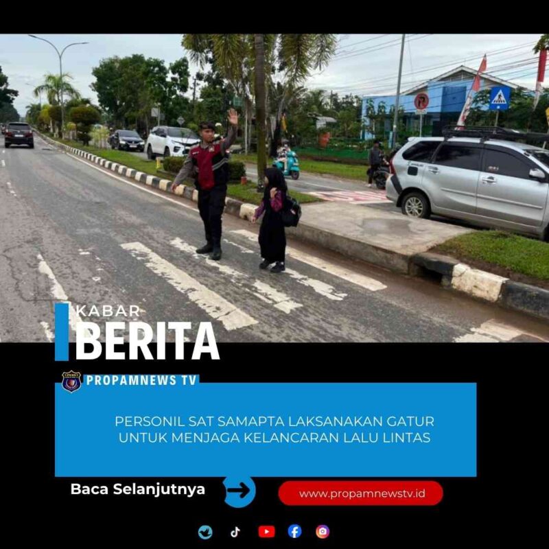 //propamnewstv.id – Dalam upaya untuk menjaga kelancaran lalu lintas di kabupaten Kutai Timur, Sat Samapta Polres Kutim melaksanakan penjagaan dan pengaturan (Gatur) di sepanjang jalan Jl. A Wahab Syaharanie.