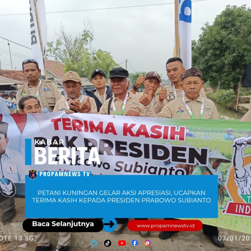 JAWA BARAT, // PropamNewstv.id — Hamparan semangat dan rasa syukur menyatu di tengah lapangan terbuka Kabupaten Kuningan. Ratusan petani yang tergabung dalam komunitas Tani Merdeka Indonesia (TMI) Kabupaten Kuningan menggelar aksi apresiasi sebagai bentuk ucapan terima kasih kepada Presiden Republik Indonesia, Prabowo Subianto, atas perhatian dan kebijakan pemerintah yang dinilai berpihak kepada petani.