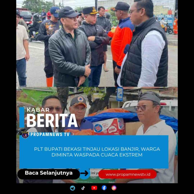 CIKARANG //propamnewstv.id – Warganet, hujan dengan intensitas tinggi mengguyur Kabupaten Bekasi sejak Sabtu (17/1). Plt Bupati Bekasi, dr. Asep Surya Atmaja, didampingi Kepala Badan Penanggulangan Bencana Daerah (BPBD) Kabupaten Bekasi, Muchlis dan Camat Cikarang Utara, Enop Can, meninjau lokasi banjir di Kampung Kali Ulu Kecamatan Cikarang Utara, Minggu (18/1).