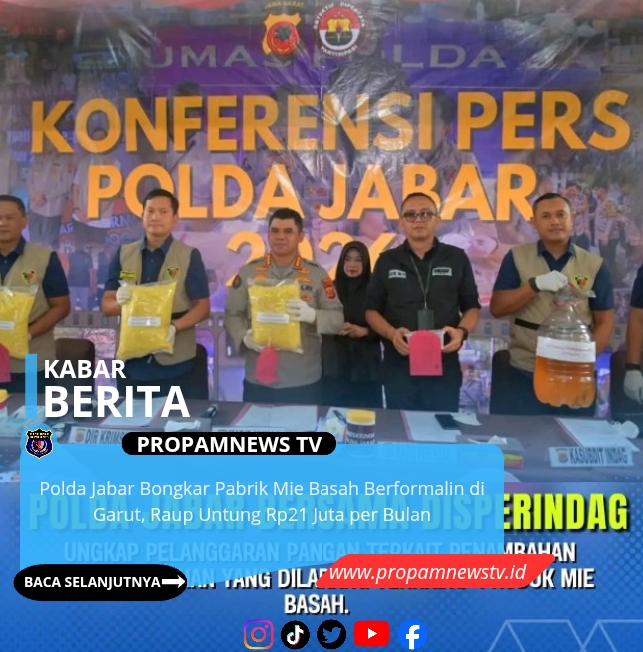 GARUT, // PropamNewstv.id — Direktorat Reserse Kriminal Khusus (Ditreskrimsus) Polda Jawa Barat membongkar praktik produksi mie basah mengandung bahan tambahan pangan berbahaya di Kabupaten Garut. Seorang pria berinisial WK ditetapkan sebagai tersangka dalam kasus tersebut.