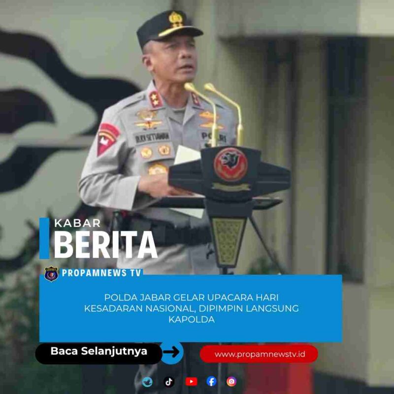 Bandung, // PropamNewstv.id — Polda Jawa Barat menggelar Upacara Hari Kesadaran Nasional yang dipimpin langsung oleh Kapolda Jawa Barat Irjen Pol. Dr. Rudi Setiawan, S.I.K., S.H., M.H., di halaman Mapolda Jabar, Senin (19/1/2026). Upacara tersebut diikuti oleh seluruh jajaran personel Polda Jabar sebagai bentuk penghormatan serta penguatan nilai-nilai kebangsaan.