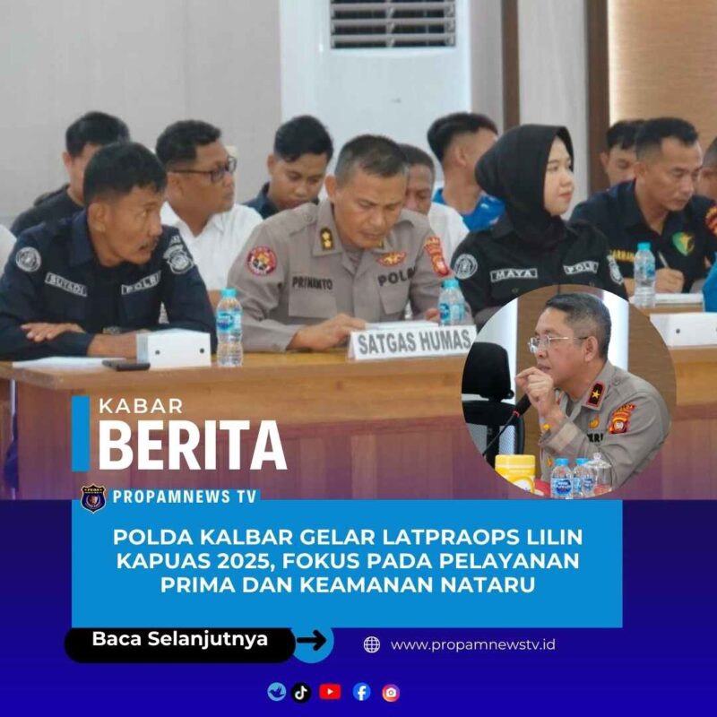 PONTIANAK // propamnewstv.id – Menjelang perayaan Natal 2025 dan Tahun Baru 2026, Kepolisian Daerah Kalimantan Barat menggelar Latihan Pra Operasi (Latpraops) Lilin Kapuas 2025, yang diikuti oleh para Kepala Satuan Tugas (Ka Satgas) , Wakil Kepala Satuan Tugas (Waka Satgas), serta Personel yang terlibat Oprasi Lilin Kapuas 2025, bertempat di Graha Khatulistiwa Polda Kalbar. (Kamis, 18/12/2025)