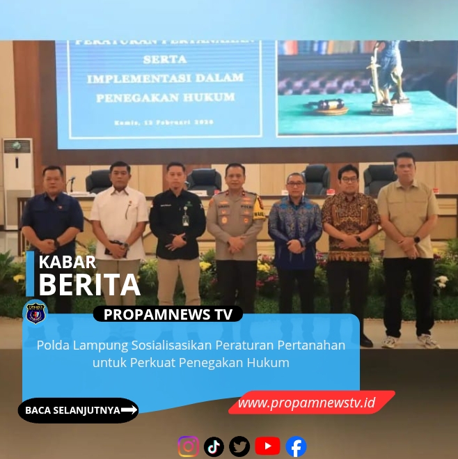 Bandar Lampung, // PropamNewstv.id – Wakapolda Lampung Brigjen Pol. Drs. Sumarto, M.Si., membuka kegiatan Sosialisasi Peraturan Pertanahan dan Implementasinya dalam Penegakan Hukum di GSG Presisi Polda Lampung, Kamis (12/2/2026).