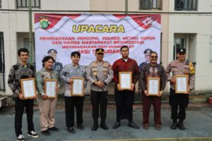 Di bawah langit Kota Depok yang penuh harapan, Kapolres Metro Depok, Kombes Pol Abdul Waras, memberikan penghargaan dan kehormatan tulus kepada Aiptu Bambang Prasetyo Utomo bersama lima warga sipil pemberani yang telah berhasil menggagalkan potensi tawuran di wilayah Cipayung pada Selasa, 24 Februari 2026.