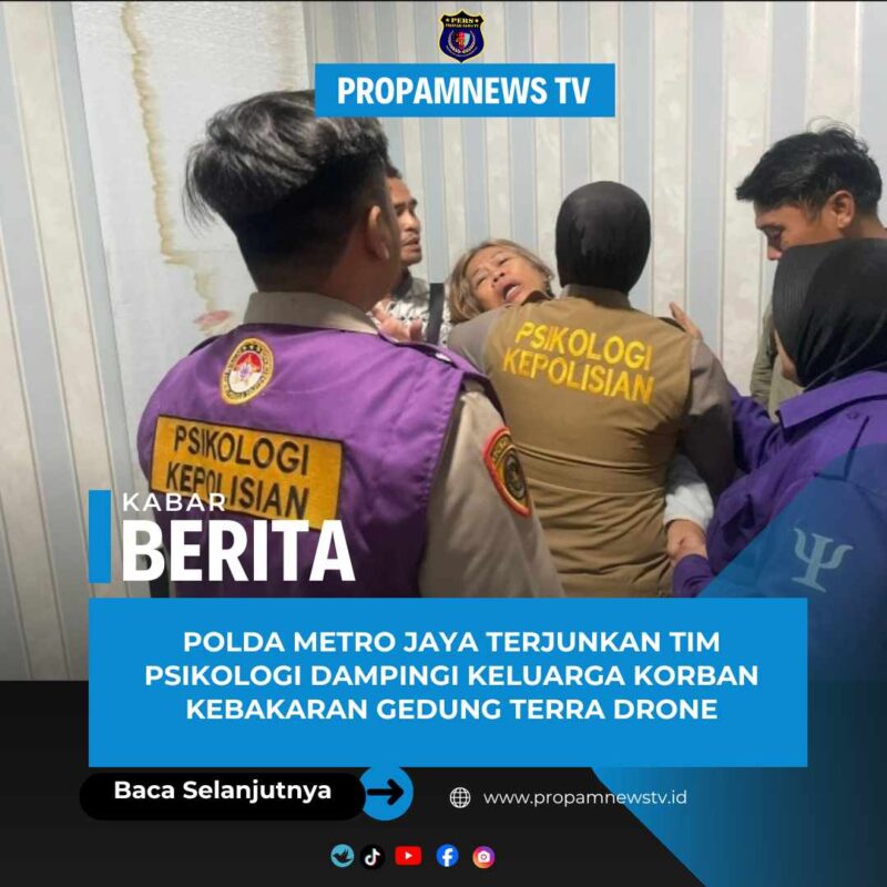 Jakarta 9-12-2025, PROPAMNEWSTV.ID — Polda Metro Jaya melalui Bagian Psikologi Biro SDM menurunkan tim pendampingan psikologis bagi keluarga korban kebakaran Gedung Terra Drone di Jakarta Pusat. Upaya ini dilakukan sebagai bentuk respons cepat Polri dalam memastikan keluarga mendapatkan dukungan di tengah situasi yang penuh kecemasan dan ketidakpastian. Pendampingan dilakukan di RS Polri Kramat Jati sejak para keluarga mulai berdatangan untuk memastikan informasi terkait kondisi anggota keluarga yang menjadi korban.