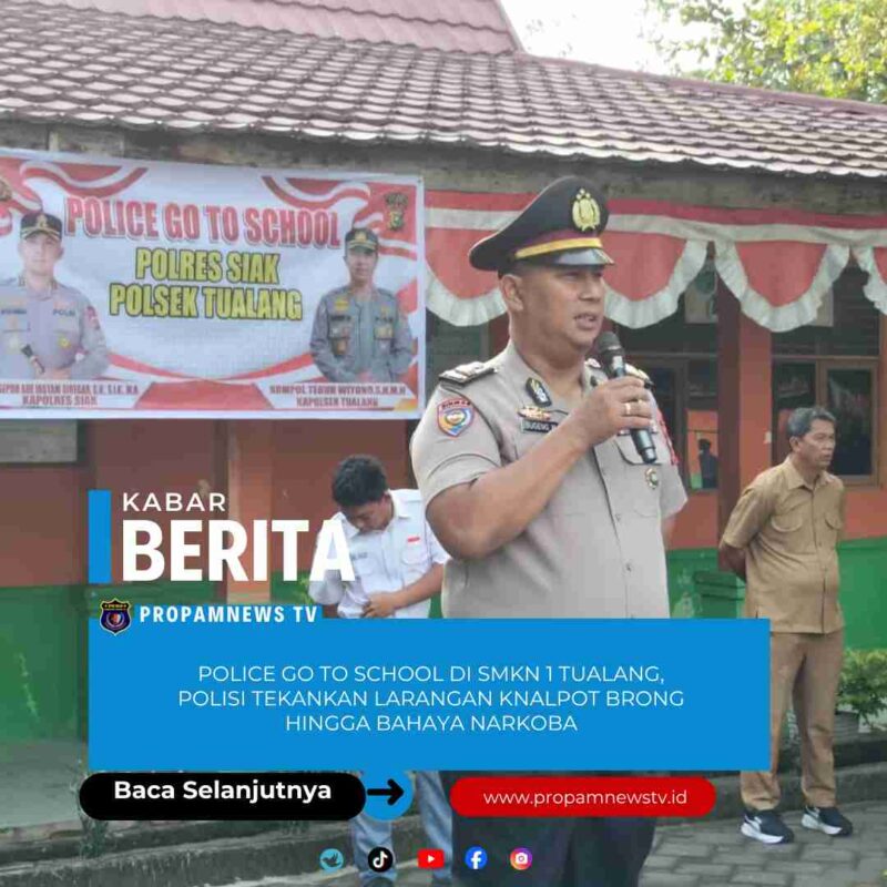 Perawang, // PropamNewstv.id – Polsek Tualang kembali melaksanakan program Police Go To School sebagai upaya pembinaan dan edukasi kepada pelajar. Kegiatan tersebut dilaksanakan di SMKN 1 Tualang, Kampung Perawang Barat, Kecamatan Tualang, Kabupaten Siak, dan diikuti oleh 525 siswa/i pada saat pelaksanaan upacara bendera. Senin(19/1/26)