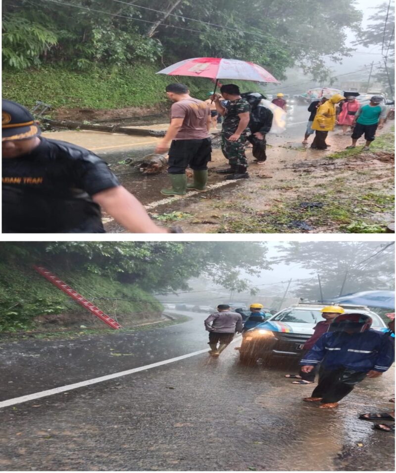 ” Alhamdulillah, berkat kerja sama semua pihak, area longsor tersebut bisa di bersihkan dan bisa di lalui oleh para pengguna jalan, ” Ujarnya