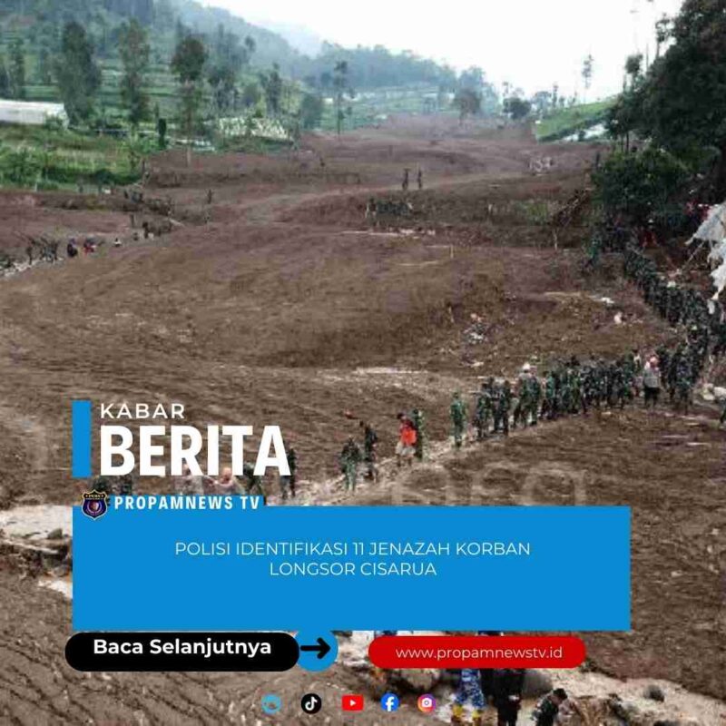 Cisarua, // PropamNewstv.id – Berdasarkan data per Ahad, 25 Januari 2026, tim gabungan pencarian telah mengevakuasi total 25 kantong jenazah korban tanah longsor yang melanda Kampung Babakan Cibudah, Desa Pasirlangu, Kecamatan Cisarua, Kabupaten Bandung Barat, Jawa Barat. Dari 25 jenazah itu, tim Disaster Victim Identification (DVI) berhasil mengidentifikasi sebanyak sebelas korban.