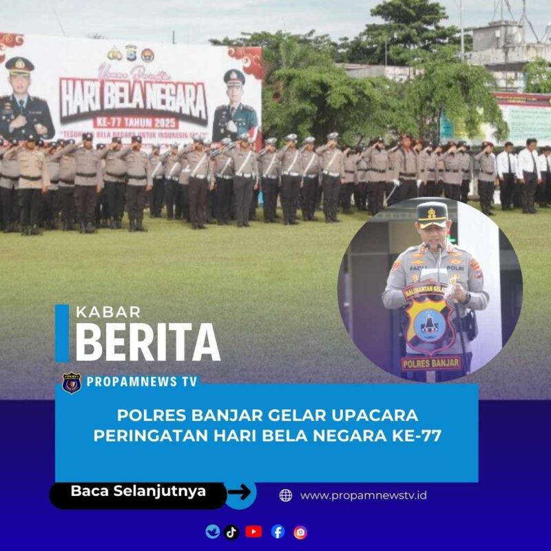 Banjar // propamnewstv.id — Polres Banjar melaksanakan Upacara Peringatan Hari Bela Negara ke-77 Tahun 2025 di Halaman Apel Polres Banjar, Jumat (19/12/2025). Upacara tersebut dipimpin langsung oleh Kapolres Banjar, AKBP Dr. Fadli, S.H., S.I.K., (tautan tidak tersedia).