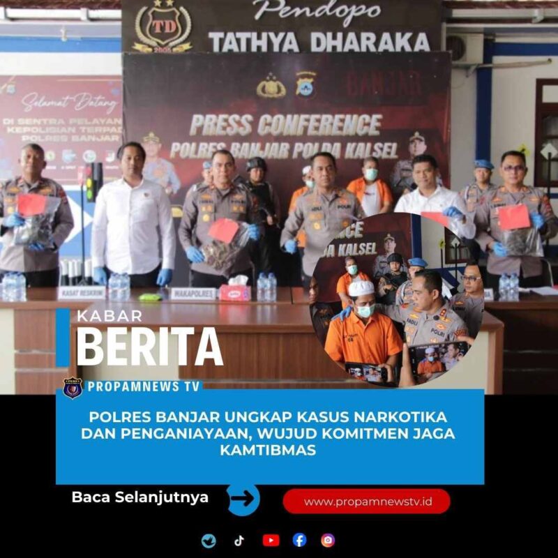 MARTAPURA, resbanjar.kalsel.polri.go.id, //propamnewstv.id – Polres Banjar terus menggencarkan penegakan hukum terhadap berbagai tindak pidana di wilayah Kabupaten Banjar, termasuk kejahatan Narkotika dan tindak pidana kekerasan.
