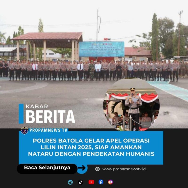 KALSEL // propamnewstv.id — Polres Barito Kuala (Batola) menggelar Apel Gelar Pasukan Operasi Lilin Intan 2025 dalam rangka pengamanan Perayaan Natal 2025 dan Tahun Baru 2026, Jumat (19/12/2025) sore, di Lapangan Apel Polres Batola. Apel tersebut dipimpin langsung oleh Kapolres Batola, AKBP Anib Bastian, S.I.K., M.H., selaku Inspektur Upacara, dan dihadiri unsur Forkopimda serta instansi terkait.