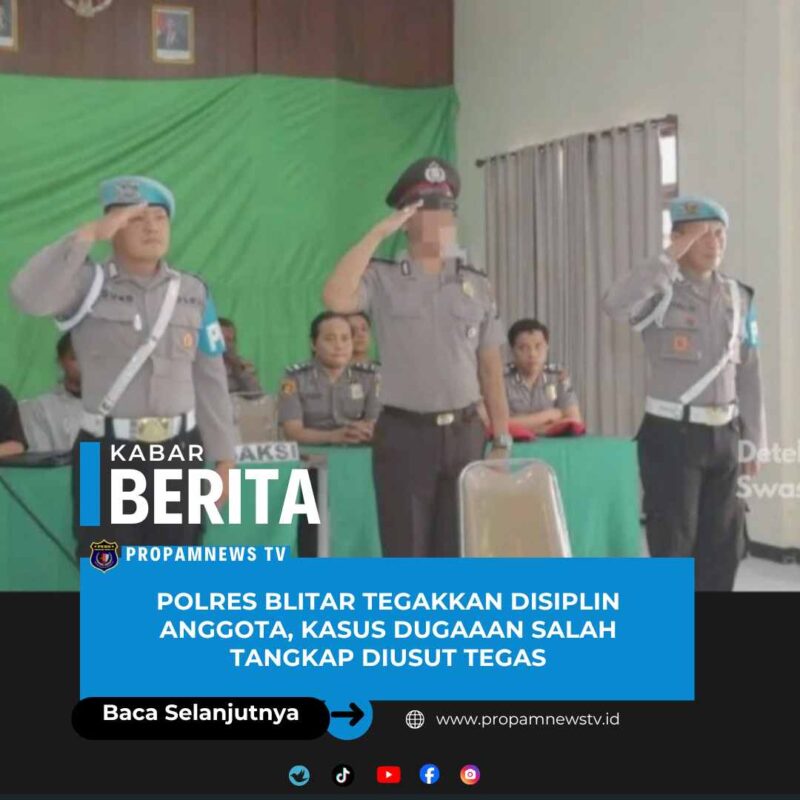 Blitar, Jawa Timur // propamnwstv.id – Polres Blitar melakukan penegakan disiplin kepada anggota kepolisian terkait kasus dugaan salah tangkap. Kapolres Blitar, AKBP Arif Fazlurrahman, menyatakan bahwa sidang disiplin ini merupakan bentuk komitmen Polres Blitar dalam menegakkan disiplin ke anggota.