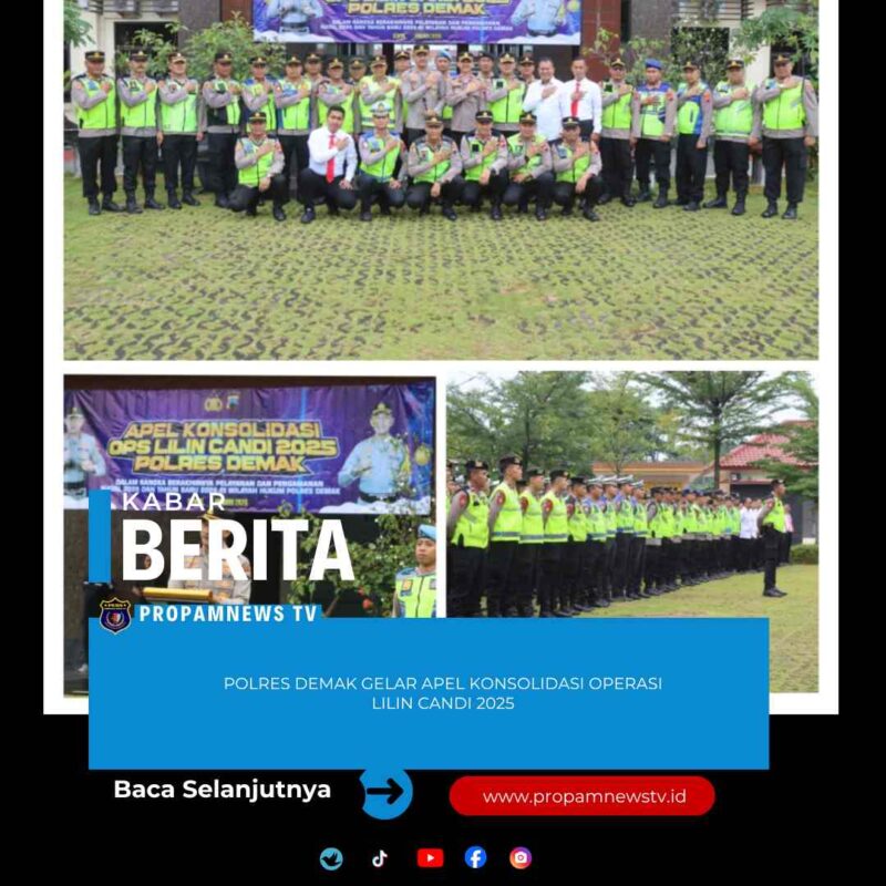 Demak //propamnewstv.id – Polres Demak menggelar Apel Konsolidasi Operasi Lilin Candi 2025 sebagai penanda berakhirnya rangkaian pelayanan dan pengamanan perayaan Natal 2025 serta Tahun Baru 2026 di wilayah hukum Polres Demak. Kegiatan tersebut berlangsung di Lapangan Wicaksana Laghawa Mapolres Demak, Senin (5/1/2026).