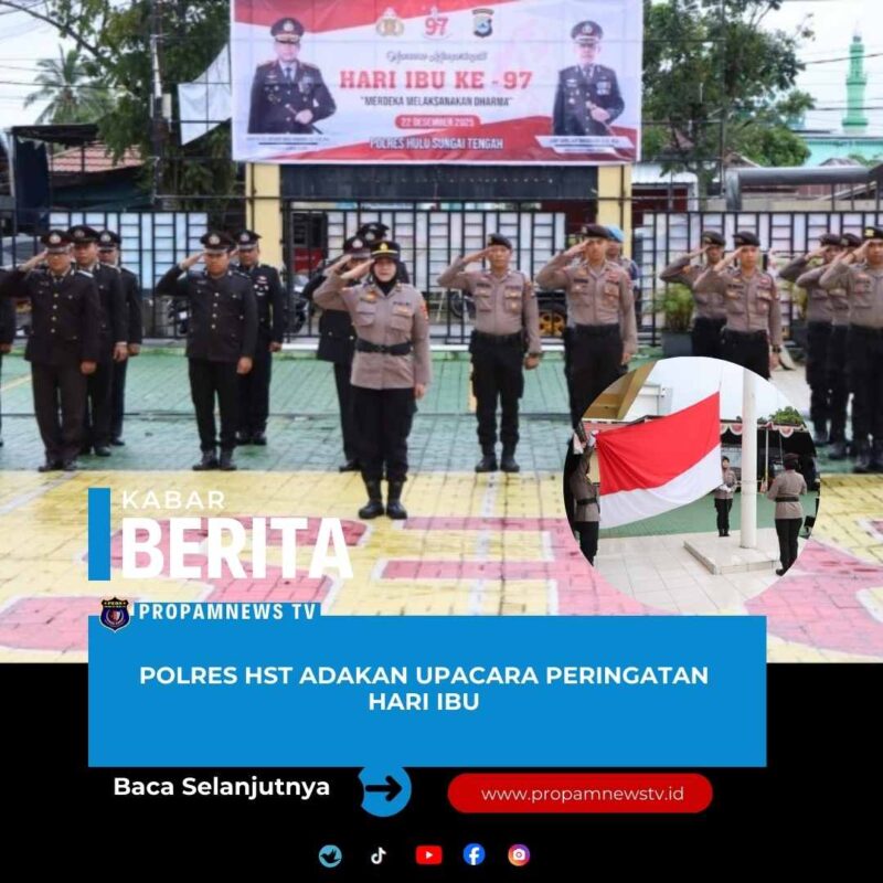 Polres Hulu Sungai Tengah Polda Kalimantan Selatan // propamnewstv.id— Dalam rangka memperingati Hari Ibu ke-97 Tahun 2025, Polres Hulu Sungai Tengah menggelar Upacara Peringatan Hari Ibu ke-97 dengan mengusung tema “Merdeka Melaksanakan Dharma”, bertempat di Halaman Mako Polres HST, Senin (22/12/2025).