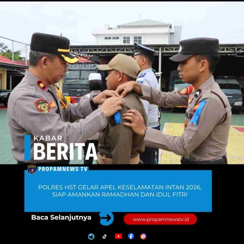 Kalimantan, // PropamNewstv.id – Polres Hulu Sungai Tengah, Polda Kalimantan Selatan. Dalam rangka menyambut bulan Suci Ramadhan dan Menjelang Ops Kepolisian Terpusat *Ketupat Intan 2026* Polres HST melaksanakan Apel Gelar Pasukan Operasi Kepolisian Kewilayahan “Keselamatan Intan–2026” yang dipimpin Kapolres HST AKBP Jupri JHP Tampubolon, S.I.K, M.Si yang diwakili Wakapolres HST Kompol Maturidi, S.H yang di ikuti Forkopimda HST / mewakili, TNI, instansi terkait, dan personel Polres HST bertempat di Halaman Mako Polres HST. Senin 2/2/2026.