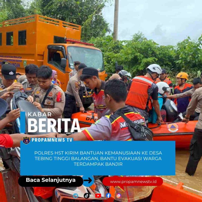 Kalimantan //propamnewstv.id – Polres Hulu Sungai Tengah (HST) menunjukkan solidaritas dan kepedulian tinggi terhadap sesama dengan mengerahkan Tim Bantuan Kemanusiaan untuk membantu penanganan bencana banjir di Desa Tebing Tinggi, Kabupaten Balangan.