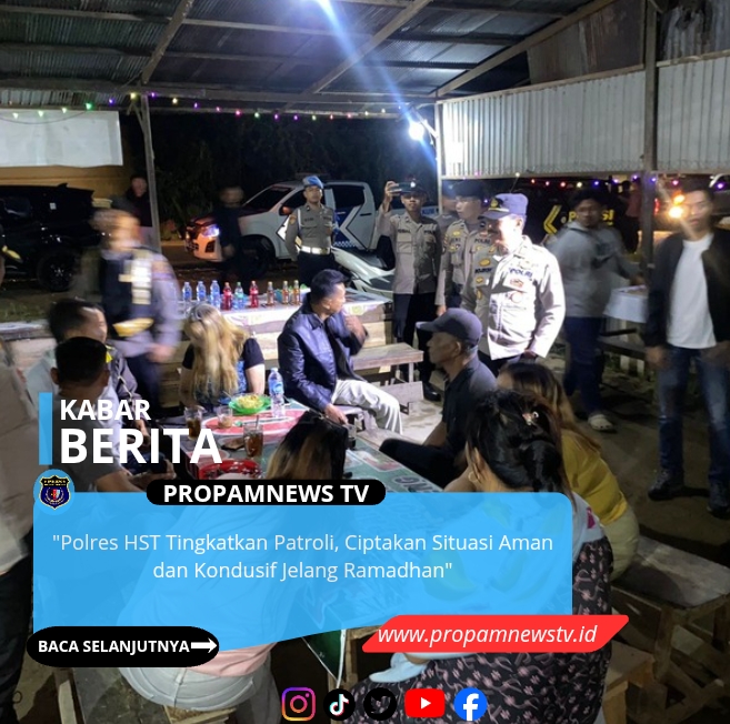 Polres Hulu Sungai Tengah Polda Kalimantan Selatan, // PropamNewstv.id – Dalam rangka menyambut Bulan Suci Ramadhan 1447 H / 2026 M, Polres Hulu Sungai Tengah melaksanakan patroli yang ditingkatkan guna menciptakan situasi kamtibmas yang aman dan kondusif di wilayah Kabupaten Hulu Sungai Tengah, Jumat (13/2/2026).
