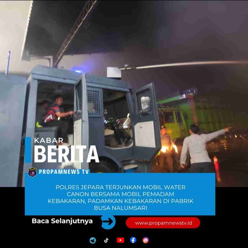 Jepara, // PropamNewstv.id – Polres Jepara. Kebakaran melanda pabrik busa bernama PT Cengqi di Desa Pringtulis, Kecamatan Nalumsari, Kabupaten Jepara, Jawa Tengah (Jateng).