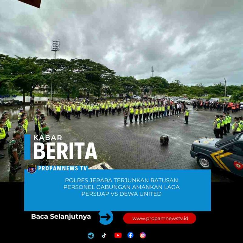 Jepara, // PropamNewstv.id – Polres Jepara | Kepolisian Resor (Polres) Jepara, Polda Jawa Tengah, menurunkan 485 personel gabungan untuk mengamankan laga BRI Liga Super musim 2025/2026 antara Persijap Jepara melawan Dewa United di Stadion Gelora Bumi Kartini Jepara, pada Senin (12/1/2026) malam.