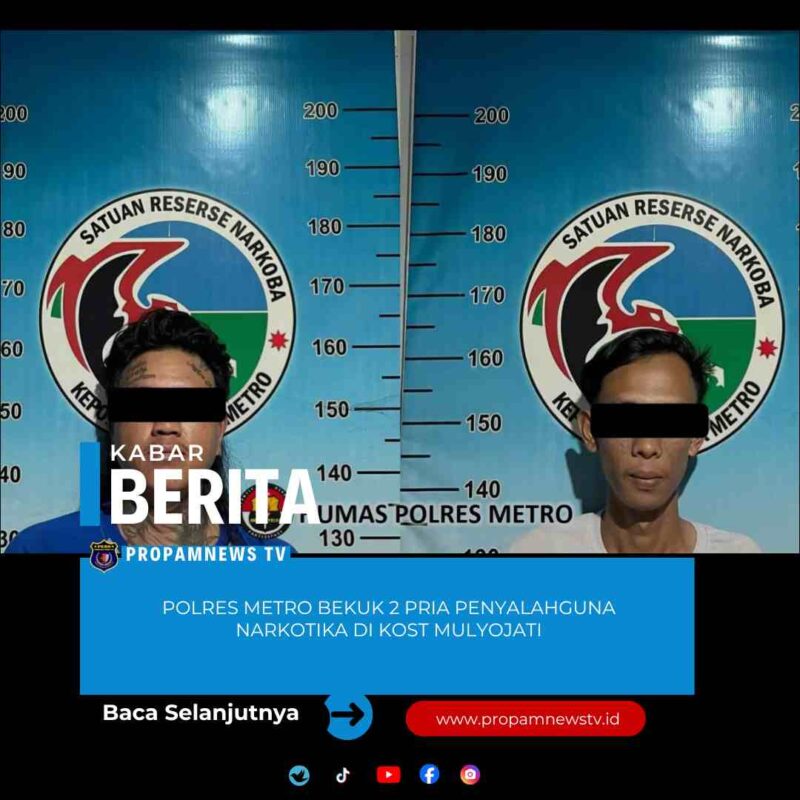 Metro //propamnewstv.id – Satuan Reserse Narkoba Polres Metro berhasil mengungkap kasus tindak pidana narkotika dengan mengamankan dua orang pria di sebuah rumah kost yang berada di Kelurahan Mulyojati, Kecamatan Metro Barat, Kota Metro, Senin (19/1/2026) sekitar pukul 13.00 WIB.