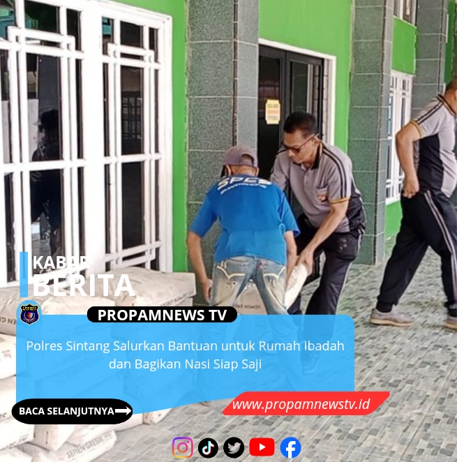 Sintang, // PropamNewstv – Kepedulian terhadap masyarakat kembali ditunjukkan jajaran Polres Sintang melalui kegiatan Polres Sintang Berbagi yang dilaksanakan dengan menyalurkan bantuan untuk rumah ibadah serta membagikan nasi siap saji kepada warga dan petugas pencari korban tenggelam, Jumat (13/2/2026).