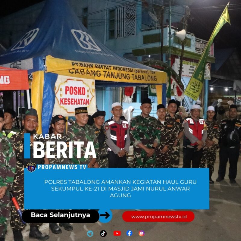 Tabalong // PropamNewstv.id – Polres Tabalong melaksanakan pengamanan kegiatan Haul Guru Sekumpul ke-21 yang digelar di Masjid Jami Nurul Anwar Agung, Kelurahan Agung, Kecamatan Tanjung, Kabupaten Tabalong, Jumat (02/01/2026) malam.