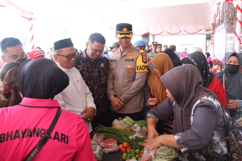 Polres Tabalong Gelar Gerakan Pangan Murah,Kapolres dan Bupati Borong sembako Berikan Kepada Pengunjung