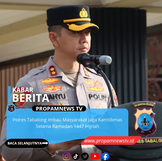 Polres Tabalong, // PropamNewstv – Dalam rangka menciptakan situasi keamanan dan ketertiban masyarakat (kamtibmas) yang aman dan kondusif selama Bulan Suci Ramadan 1447 H / 2026 M, Polres Tabalong mengeluarkan imbauan kepada seluruh masyarakat Kabupaten Tabalong. Jum’at (20/02) siang.