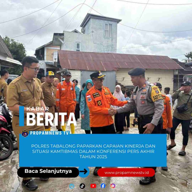 Tabalong //propamnewstv.id – Polres Tabalong menggelar Konferensi Pers Akhir Tahun 2025 yang dipimpin langsung oleh Kapolres Tabalong AKBP Wahyu Ismoyo J., S.I.K., M.H., M.Tr.Opsla, didampingi para Pejabat Utama (PJU) Polres Tabalong, serta dihadiri oleh awak media cetak, elektronik, dan online di Kabupaten Tabalong.