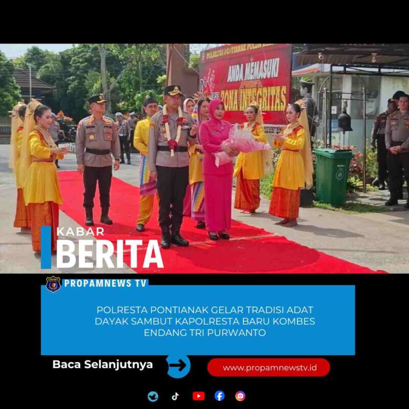 PONTIANAK //propamnewstv.id – Polresta Pontianak menggelar tradisi adat Dayak sebagai bentuk penyambutan Kapolresta Pontianak yang baru, Kombes Pol Endang Tri Purwanto, S.I.K., M.Si, bersama istri, Ny. Okta Endang Tri Purwanto, pada Senin (12/01/2025).