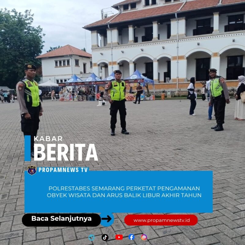 SEMARANG // PropamNewstv.id – 021/2026 Polrestabes Semarang meningkatkan pengamanan di seluruh obyek wisata serta jalur arus balik libur akhir tahun guna memastikan keamanan, kenyamanan, dan kelancaran aktivitas masyarakat di Kota Semarang.