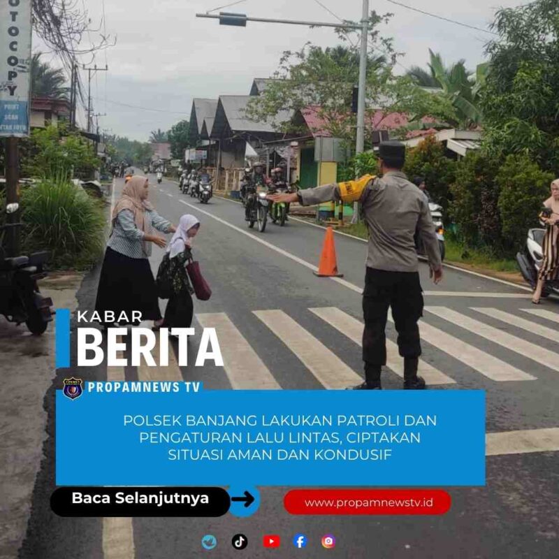 Hulu Sungai Utara //propamnewstv.id – Polsek Banjang, Polres Hulu Sungai Utara, melakukan patroli dan pengaturan lalu lintas di beberapa lokasi strategis di Banjang, pada Selasa, 6 Januari 2026. Kegiatan ini bertujuan untuk menciptakan situasi kamtibmas yang aman dan kondusif, serta mencegah terjadinya tawuran, balap liar, dan aksi kejahatan jalanan (street crime).