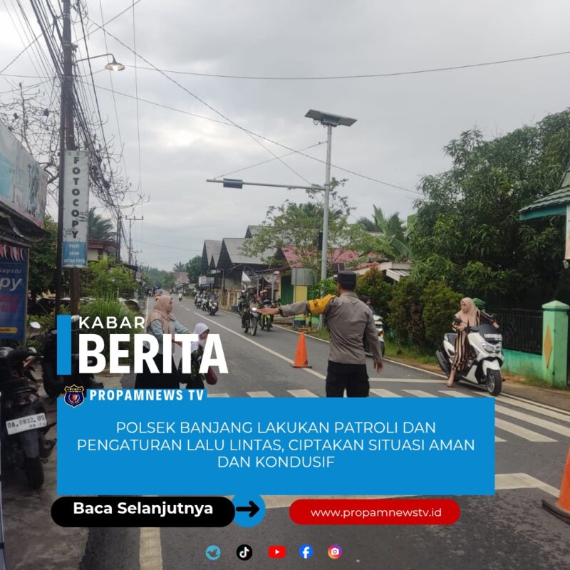 Hulu Sungai Utara, // PropamNewstv.id – Polsek Banjang, Polres Hulu Sungai Utara, melakukan patroli dan pengaturan lalu lintas di beberapa lokasi strategis di Banjang, pada Selasa, 6 Januari 2026. Kegiatan ini bertujuan untuk menciptakan situasi kamtibmas yang aman dan kondusif, serta mencegah terjadinya tawuran, balap liar, dan aksi kejahatan jalanan (street crime).