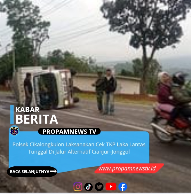 Personel Polsek Cikalongkulon, // PropamNewstv.id -Polres Cianjur melaksanakan kegiatan cek Tempat Kejadian Perkara (TKP) kecelakaan lalu lintas tunggal yang terjadi di Jalan Alternatif Cianjur–Jonggol, tepatnya di Kampung Jenet, Desa Mekargalih, Kecamatan Cikalongkulon, Kabupaten Cianjur, Kamis (12/2/2026).