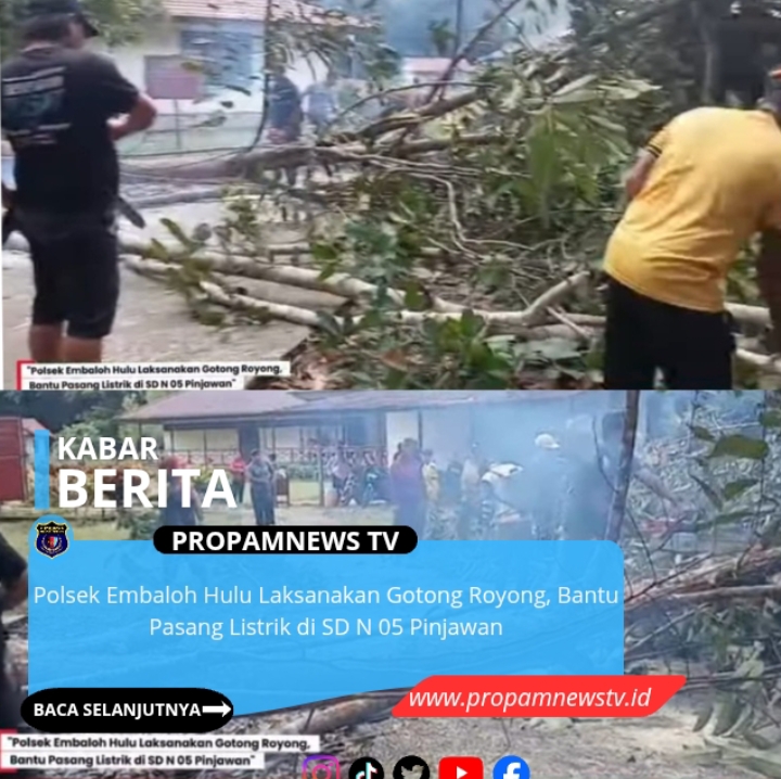 Kapuas Hulu, // Propomnewstv.id – Kalbar Polsek Ambaloh,Polres Kapuas Hulu PoldaKalbar,Polsek Ambaloh melaksanakan gotong royong pembersihan jalur pemasangan kabel listrik di SD N 05 Pinjawan, Desa Pulau Manak, Kecamatan Embaloh Hulu