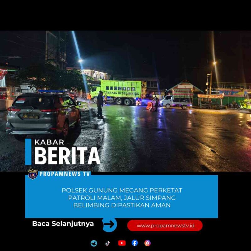 MUARA ENIM //propamnewstv.id – Polsek Gunung Megang, Polres Muara Enim, terus meningkatkan patroli malam hari guna memastikan keamanan dan kenyamanan masyarakat, khususnya pengguna jalan yang melintas di jalur Simpang Belimbing hingga perbatasan Kabupaten PALI. Patroli ini dilakukan sebagai langkah antisipasi terhadap aksi pemalakan dan pungutan liar yang dinilai sangat meresahkan, Kamis malam, (22/1/26).
