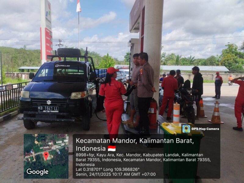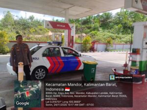 LANDAK//propamnewstv.id – Demi menjaga stabilitas keamanan dan kenyamanan masyarakat, jajaran Polsek Mandor melaksanakan kegiatan patroli dialogis dengan sasaran Stasiun Pengisian Bahan Bakar Umum (SPBU) di Kecamatan Mandor. Senin, ( 24/11/2025 ).