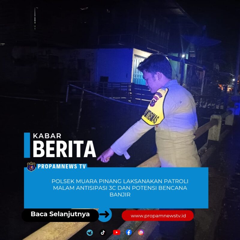Sumatra Selatan, // PropamNewstv.id – Personel Polsek Muara Pinang melaksanakan patroli malam untuk mengantisipasi tindak pidana 3C (Curat, Curas, Curanmor), balap liar, serta potensi bencana alam berupa banjir dan longsor.