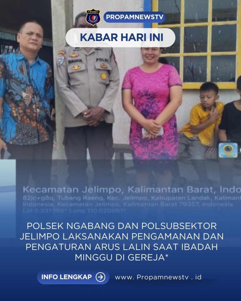 LANDAK // propamnewstv.id – Dalam rangka memberikan rasa aman kepada masyarakat yang melaksanakan ibadah Minggu bagi umat kristiani, Anggota Polsek Ngabang melaksanakan Pengamanan di beberapa gereja di setiap minggunya, salah satunya adalah di Gereja Salib Suci Kecamatan Ngabang dan Gereja GKBI Jemaat Zaitun Tubang Raeng Kecamatan Jelimpo Kabupaten Landak. Minggu (30/11/2025)