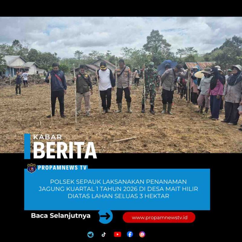 SINTANG, // PropamNewstv.id – Program tanam jagung Kuartal 1 (Q1) Tahun 2026 menunjukkan adanya panen raya serentak dan penanaman baru di berbagai wilayah Indonesia, dipimpin oleh Polri dan didukung pemerintah daerah serta swasta, sebagai upaya memperkuat ketahanan pangan nasional dengan melibatkan kelompok tani serta memanfaatkan lahan potensial seperti lahan eks-tambang untuk produksi jagung pipil guna mendukung swasembada pangan nasional dan kesejahteraan petani.